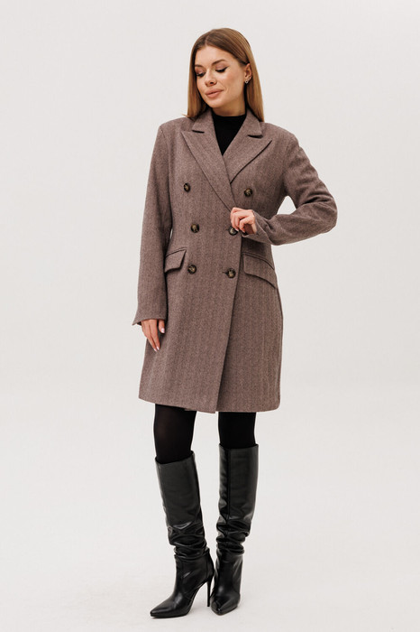Платье-пиджак прилегающего силуэта, выполнен из теплой ткани. Застежка на петли-пуговицы,по переду действующие карманы, на рукавах шлицы. Изделие на подкладке.