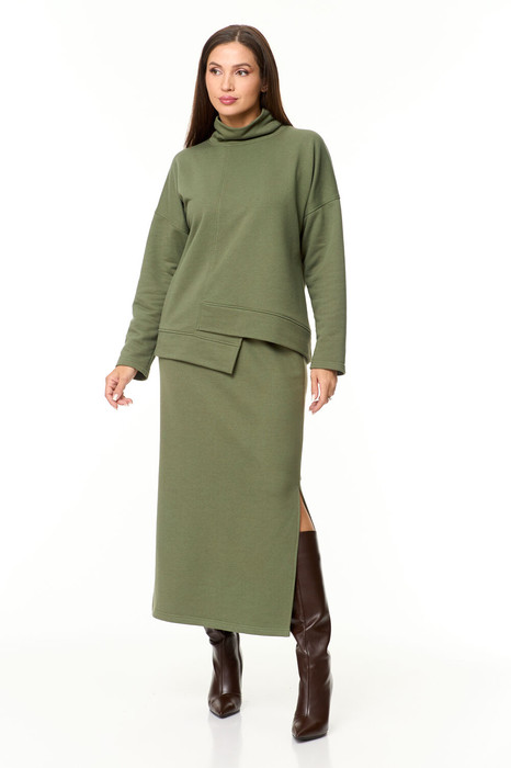 Шикарный трикотажный женский комплект от бренда Anastasia, идеальный для любого случая. Этот костюм сочетает в себе элегантность и комфорт, что делает его подходящим как для деловых встреч или домашней одежды, так и для праздничных мероприятий. Комплект состоит из офисной кофты оверсайз, который придаёт ей особую привлекательность. Нежный и теплый материал делает его отличным выбором для осенне-зимнего периода, при этом он легкий, поэтому его можно носить и весной. Джемпер прямого силуэта со спущенным плечом, низ по полочке фигурный, асимметричный и подрез в виде запаха. По низу спинки и полочки идет отрезной пояс. Юбка макси зауженная к низу, по бокам разрезы, пояс отрезной на резинке.  Нарядный костюм отлично подойдет для долгих прогулок или для работы, для офиса. Юбка - макси создает чувственный образ благодаря своей длине, придающей женственность и элегантность вашему образу. Это не только универсальная одежда для деловых встреч или прогулок, но и идеальный выбор для различных торжественных мероприятий, подойдет как для взрослых женщин, так и для подростков. Отдельный части костюма легко будут сочетаться с вещами из Вашего гардероба. Модель можно отнести к стилю спортивный кэжуал, оверсайз, спортивный шик. Костюм можно носить с кроссовками, высокими сапогами или ботинками. Обязательно добавьте наш бренд в избранное и следите за новинками, распродажами, скидками и акциями! Хороших покупок от «Анастасия». Длина блузы (по спинке):(50-54)- 61см, (56-60)-63 см. Длина рукава: (50-60)-45см. Длина юбки: (50-60):-90см.