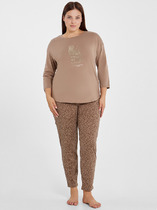 Брюки свободные, прямые, полной длины. По передним половинкам выполнены карманы. По талии брюки на притачном поясе с эластичной тесьмой.