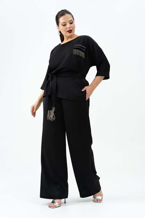 Костюм женский брючный классика для любого мероприятия. Туника прямого силуэта, с нагрудными вытачками, с декоративным карманом, с боковыми разрезами. Брюки женские прямого кроя, на притачном поясе по переду и с пояс с резинкой по спинке. Передние половинки с карманами в швах.