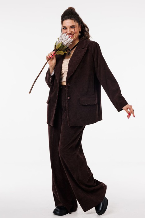 Погрузитесь в мир элегантности и стиля с нашим потрясающим костюмом-двойкой, который станет вашим незаменимым союзником в любых ситуациях. Жакет однобортного кроя с изысканной подкладкой, украшенный уникальным принтом, привносит нотку оригинальности в классический силуэт. Функциональные карманы с клапаном добавляют практичности, а отделка бахромой по всему костюму подчеркивает внимание к деталям и создает эффектный акцент.
