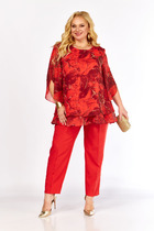Комплект с шортами выполднен из трикотажного полотна серого цвета. Джемпер прямого широкого кроя, V-образный срез горловины, застежка центральная на петли пуговички, рукав втачной слегка спущен, по низу нашито декоративное кружево. Длина изделия по спинке 56 см, длина рукава от горловины 75 см. Шорты свободного кроя. Пояс на резинке. По передней части имитация застежки на 3 пуговицы. По низу нашито декоративное кружево. Длина 36 см.