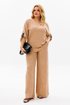 Этот 3-х предметный комплект состоит из жакета, корсетного топа и брюк. Жакет - настоящая жечужина в гардеробе. Небанальный вариант застёжки сбоку на лицевой стороне, и потайной пуговицей внутри изделия придаёт жакету характер, подчёркивает силуэт и линию талии. Жакет выгодно акцентирует фигуру, создавая утончённый и женственный образ. Благодаря декоративным рюшам из вуали, он легко станет центральным элементом образа. Карманы с клапанами. Корсетный топ с открытыми плечами — воплощение чувственной элегантности. Открытые плечи подчеркивают линию шеи и ключиц, а корсетный крой создает безупречный силуэт. Роскошный силуэт и акцентная баска делают его идеальным выбором для особенного вечера. Также топ отлично вписывается в повседневные образы. Брюки станут глотком свежего воздуха среди широких силуэтов и брюк палаццо. Их облегающий крой подчёркивает линию бедёр и тали, а затем изящно расклешается от колена.Такой фасон позволит скорректировать фигуру и подойдёт для строго дресс кода. Вертикальные линии по центру брючин вытягивают силуэт и удлиняют ноги. Застёжка классическая - молния и пуговица в цвет изделия.