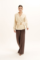 Акция Костюм EOLA 2853 бежевый с черным принтом