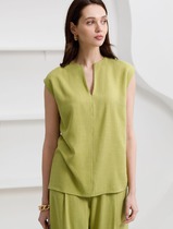 Свободный топ с V-вырезом и цельнокроеным коротким рукавом изо льна с вискозой
