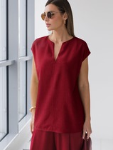 Свободный топ с V-вырезом и цельнокроеным коротким рукавом изо льна с вискозой