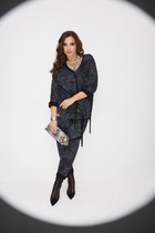 Комплект женский состоящий из жакета и брюк. Жакет прилегающего силуэта с застёжкой спереди на пуговицы, с отложным воротником с лацканами, с фигурным подрезом по переду и спинке и вставкой из сетки, с карманами по переду, с втачным рукавом. Изделие на подкладке. Брюки узкие, на поясе-кокетке, с застёжкой спереди на молнию и пуговицы, с боковыми карманами и стрелками.