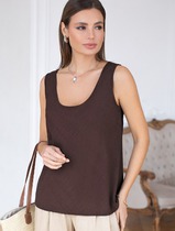Свободный топ с U-вырезом изо льна с вискозой по косой