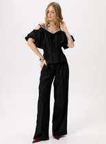 Брюки классические, свободные с боковыми подрезами, имитирующими карманы.