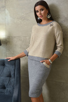 Комплект женский-двойка, из текстильной ткани, жакет удлиненный, полуприлегающего силуэта с центральной бортовой застежкой на пуговицы до линии перегиба лацкана. Спереди рельефные швы от плечевого шва, отрезной бочок и карман с клапаном. Спинка с рельефами от плечевого шва. Рукав втачной, двухшовный. Воротник пиджачного типа. Жакет на подкладке, длина по спинке 67 см, длина рукава 62 см. Брюки прямые, классические, с заутюженными стрелками, по переду обработаны карманы с отрезным бочком, застежка на тесьму-молнию и 1 пуговицу. На задних половинках обработаны вытачки и имитация карманов с листочкой, пояс в брюках притачной, сбоку на резинке. Длина брюк от талии по боковому шву 103 см.