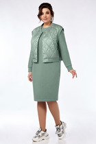 Комплект женский-двойк, состоит из блузы и брюк. Блуза женская, из легкой текстильной ткани. По переду нагрудные вытачки, спинка цельная, в боковых швах по низу разрезы. Спущенное плечо. Длина по спинке в 44-48 размерах 61 см, в 50-54 размерах 62,5,в 56-60 размерах 67 см,в 60-62 размерах 68 см. Классические брюки,из х/б ткани, прямые, слегка заужены к низу, заутюжены стрелки, по переду обработаны карманы с отрезным бочком, застежка на тесьму-молнию и 1 пуговицу. На задних половинках обработаны вытачки и имитация карманов в рамку с двумя обтачками, пояс в брюках притачной. По низу брюк в боковом шве есть небольшой разрез.