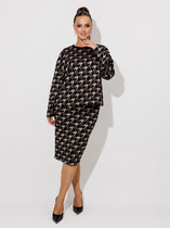 Комплект женский двухпредметный состоит из куртки и брюк. Куртка прямого силуэта выполнена из экокожи в сочетании с трикотажем. На полочке накладные карманы, с капюшоном, без подкладки, застежка молния по переду. Длина куртки по спинке 80 см, длина рукава 60 см. Брюки полуприлегающего силуэта из трикотажа с лампасами в боковых швах из отделочной ткани, пояс на резинке, с карманами. Длина брюк- 104 см.
