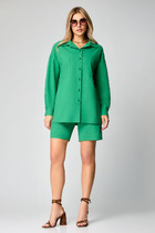 Костюм женский свободного силуэта,состоит из джемпера и брюк. Джемпер с разрезами в боковых швах, рукав длинный втачной с манжетом на резинке, воротник стойка, Брюки свободные прямые, пояс на резике, в боковых швах карманы.