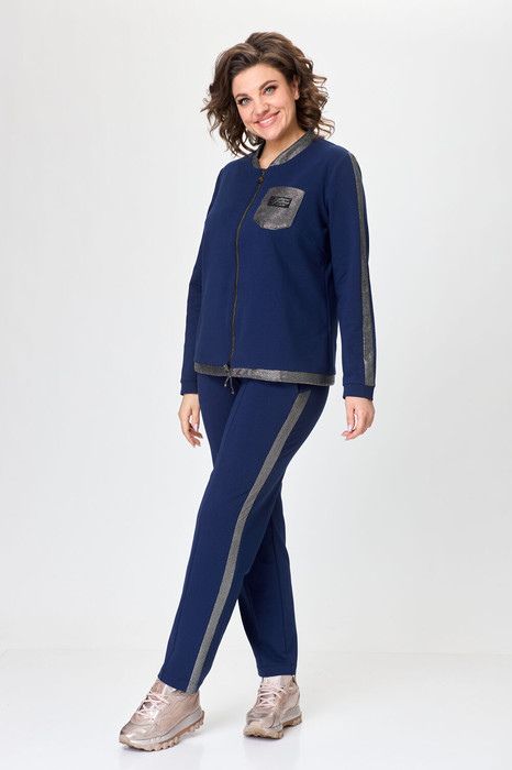 Стильный женский костюм, состоит из блузона и брюк. Костюм выполнен в спортивном стиле.