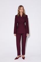 Брюки прямые, со стрелкой по переду, в боковых швах на уровне бедер наклонные карманы, верх брюк на поясе с резинкой.