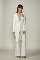 Комплект Филиция. Состоящий из жакета и юбки из поливискозной ткани. Жакет идеально дополнит повседневный и нарядный образ, полуприлегающего силуэта. Пиджачный- отложной воротник формирует красивую линию декольте, на нем расположена авторская вышивка " линиарные хрустальные цветы". Застёжка на пуговицы, по переду расположены боковые карманы с клапанами. Рукав длинный. Элегантная юбка прямого силуэта чуть зауженная к низу, ассиметричная. По низу слева вертикальный рез заканчивается разрезом по бокам расположены карманы. Юбка на поясе. Длина юбки - 58 см. Длина жакета - 75 см.