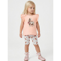 Костюм из кулирки для девочек футболка + шорты. Дизайн футболки в виде разноцветных полосок и надписи. Короткие темные шорты с аналогичным принтом. Может быть парой женскому костюму Петуния (продается отдельно). Размеры от 28 до 40. Имеется возможность розничного заказа данного товара.