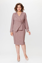 Костюм трикотажный 2-х предметный состоящий из джемпера и брюк. Джемпер полуприлегающего силуэта с втачным одношовным рукавом, низ рукава фигурный. Полочка с фигурным низом и правый боковой шов к низу слегка переходит на перед. По переду нашивка "BUTER". Горловина, расширенная с невысокой цельнокроеной стойкой. Брюки-кюлоты слегка расклешенные и укороченные к низу на притачном отстроченном поясе со втянутым в него декоративным шнурком.