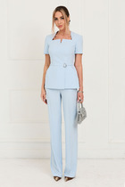 Комплект брючный кофта+брюки. Кофта свободного кроя с центральной застежкой на тесьму-молнию. Спущенная линия плеча, рукав втачной, 2-шовный с пританчым манжетом по низу (довяз). На локтевой части складки. По спинке средний шов. По переду рельефные швы-в швах обработаны карманы. По низу отделочный манжет (довяз). Капюшон со средней частью. Брюки широкие. Верхний срез обработан поясом с резинкой по спинке.В боковых швах обработаны карманы. В качестве отделки используется отделочная строчка и фурнитура.