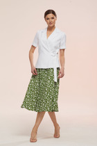 Комплект брючный состоит из кофты, топа и брюк. Кофта свободного кроя со спущенной линией плеча, на запах. Рукав втачной одношовный с манжетом по низу. Капюшон цельнокройный с передом по низу изделия, притачной пояс. Топ полуприлегающего силуэта на бретелях. по переду нагрудные вытачки. Бретели регулируются по длине. Брюки расширенные к низу, карманы в боковом шве, по переду линии притачивания, заложены складки. Верхний срез обработан поясом с резинкой.
