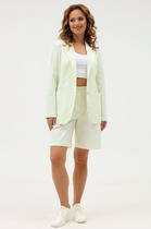 Джемпер с застежкой на тесьму молнию по центру изделия . По низу переда пробиты люверсы, в которые протянут шнурок. Рукава одно шовные, низ рукава со сборкой и притачной манжетой. Воротник стойка.