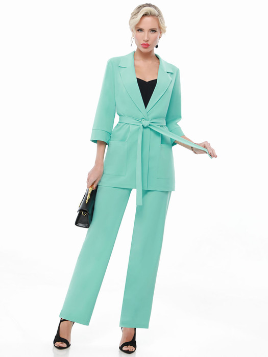Костюм мятного цвета отлично подойдет для деловых встреч, вечерних мероприятий или повседневной носки, подчеркивая индивидуальность и стиль своей хозяйки.