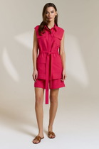 Молодёжный костюм выполнен из ткани в мелкую полоску под джинсу. По низу рукавов кофты и шорт на ткани выполнен красивый принт-пуф, имитирующий вышивку. Верх кофты и шорт на резинке, благодаря чему получился эффект рюши — очень модной в этом сезоне.