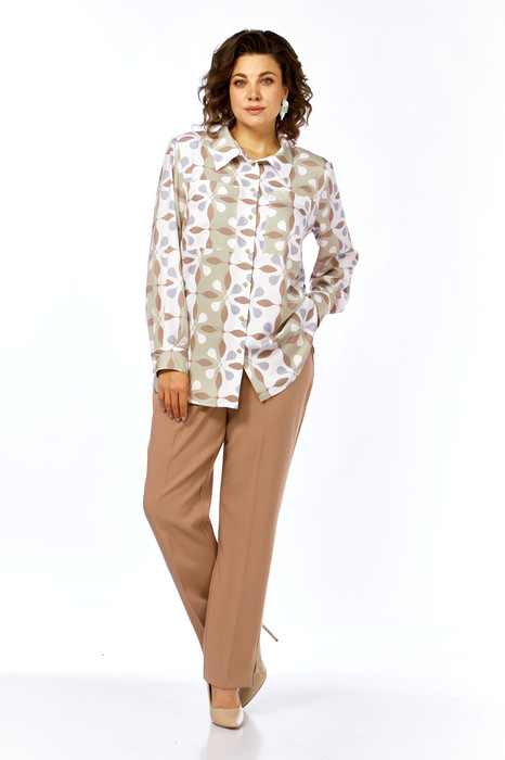 Заказать Костюм Элль стиль 2395 бежевый принт, брюки капучино