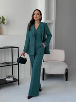 Комплект: блузка + юбка. Комплект выполнен из трикотажного полотна с люрексом. Блузка приталенного силуэта длиной до линии талии. Спереди средний шов с застежкой на потайную молнию, перекрут со сборками по боковыми швам. Спинка цельная. Рукав втачной одношовный, длиной до линии локтя. Блузка с плечевыми накладками, на подкладке. Юбка длиной макси, зауженная к низу. Переднее и заднее полотнища цельные. В левом боковом шве разрез. Юбка на цельнокроеном поясе. Юбка без подкладки.