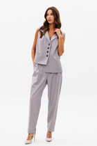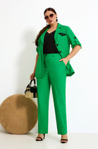 Костюм женский состоящий из туники и брюк, туника прямого силуэта с ассиметричным вырезом до бедра, и накладным карманом по линии груди. Рукава втачные с широкой манжетой по низу.. Брюки зауженные к низу, на притачном поясе с резинкой и завязкой. В боковых швах расположены функциональные карманы.