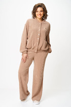 Костюм женский спортивный выполнен из трикотажного полотна, состоит из худи и брюк. Худи свободного кроя, средней длины(до середины бедра). Полочка и спинка худи разрезные. Горловина обработана - капюшоном. Рукав втачной длинный с манжетой по низу. Брюки Карго прямые от бедра, с завышенной посадкой на притачном поясе с резинкой. В боковых швах брюк имеются функциональные карманы.