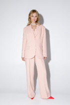 Костюм женский состоит из рубашки и шорт, выполнен из костюмной ткани. Рубашка свободного кроя, по полочке изделия расположены накладные карманы. Рукав изделия длинный. Горловина отложной воротник на стойке. По спинке изделия расположена кокетка и декоративный вырез с бантом. Застежка петли-пуговицы на планке. Шорты прямого кроя с небольшим подворотом по низу. Изделие на притачном поясе с резинкой.В боковых швах расположены карманы. Застежка молния на гульфике и петля-пуговица.