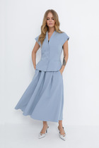 Комплект женский выполнен в спортивном стиле состоит из кофты и брюк. Джемпер ( кофта) свободного кроя oversize выполнен из сочетания болони и трикотажного полотна. Джемпер с фигурным подрезом по низу и карманом с листочкой, горловина неприлегающая стойка, со смещенной планкой и застежкой на кнопки. рукав приспущенный длинный с манжетой по низу, джемпер на полной подкладке. Брюки широкие карго выполнены из болони, изделие на притачном поясе с резинкой, по бокам брюк расположены объемные накладные карманы. застежка молния на гульфике. низ брюк с кулисой- собирается на резинку. Брюки на полной подкладке.