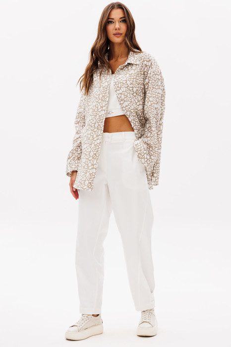 Для этого отлично подходит вещи-изюминки, как например, наш новый комплект, в котором ведущую роль играет муслиновая рубашка с принтом, а дуэтом с ней выступают самые модные брюки сезона- "barrel"".