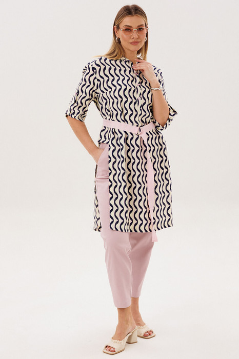 Комплект состоит из удлинённой рубашки-туники и брюк.
