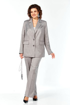 Рукав с отрезной манжетой. Брюки на притачном поясе, эластичном в области спинки, с наклонными боковыми карманами.