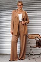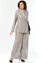 Жакет свободного расширенного силуэта, втачного покроя с центральной застёжкой и классическим английским воротником. Полочка с отрезным бочком, нагрудной вытачкой и прорезным карманом с клапаном. Спинка с центральным швом, шлицей и отрезным бочком. Рукав двухшовный с отлетной шлицей.