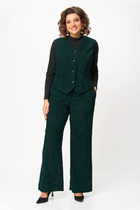 Брюки - прямого силуэта, в боковом шве - карманы, пояс на резинке, низ брюк обработан швом в подгибку, с закрытым срезом. В боковых швах лампасы из отделочной ткани."