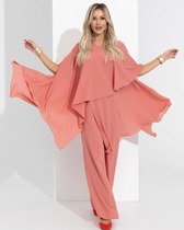 Перёд с рельефами и настрочными клапанами, вверху в рельефы вставлены дизайнерские рукава ""крылья"", что придаёт данному комплекту стиль и уникальность. Жакет без подкладки. Юбка зауженная к низу с приточным поясом. Задняя часть юбки со средним швом и шлицей.Застёжка на молнию и потойную пуговицу. Боковая часть пояса на резинке в размерах 52-54-56. Юбка на подкладке.