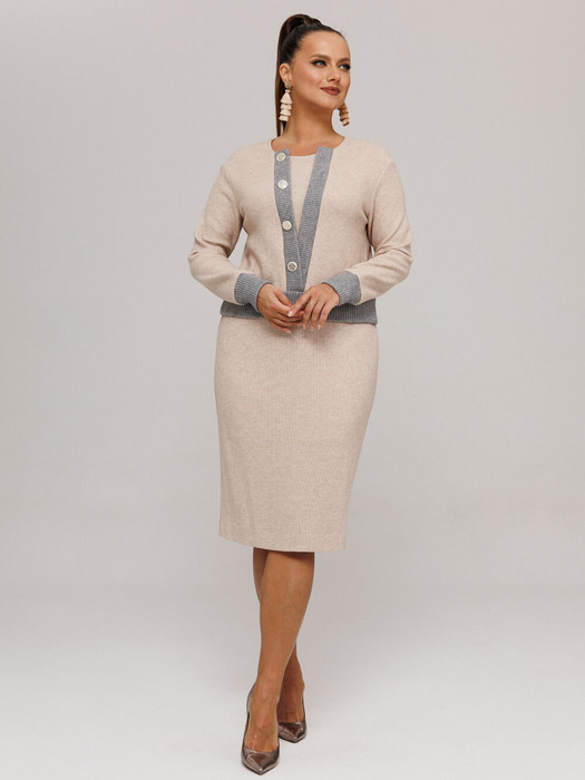 Данные женский костюм состоит из джемпера и юбки, выполнен из качественного трикотажа двух разных фактур, что обеспечивает прекрасный стиль и комфорт.