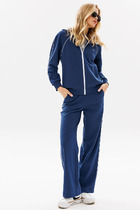 Современный комфортный костюм, состоит из брюк карго и укороченного свитшота. Отлично подойдёт для дома, прогулок, путешествий и отдыха. Пошит из теплой, комфортной ткани. Свитшот покроя оверсайз со спущенной линией плеча. Горловина, манжеты рукавов выполнены из ткани-компаньона кошкорсе. По центру переда вышивка-логотип в цвет ткани. Свитшот с кулисой по низу с резинкой внутри и фиксатором по центру переда, что позволит зафиксировать свитшот на талии. Брюки расширенные к низу, с возможностью заузить и зафиксировать ширину внизу (низ имеет кулиску с резинкой и фиксатором). На передних половинках брюк удобные накладные карманы, складки в районе линии колен. Пояс из ткани компаньена кошкорсе со шнуром и резинкой внутри.