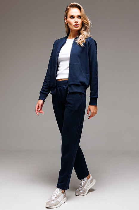Классический женский спортивный костюм состоит из спортивного бомбер на застёжке-молнии и брюк. Всесезонная ткань сделает его любимым в Вашем гардеробе как для дома, так и улицы.