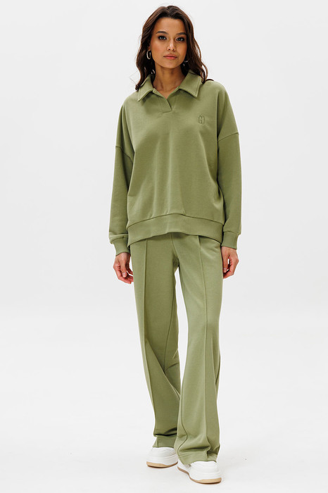 Для очаровательного образа не хватает воротничка! Воротник - маленькая деталь, которая «смягчает» и делает нежным весь аутфит. Брюки со стрелками добавят образу строгости и деловитости, что позволит носить костюм как на прогулки, так и в офис.