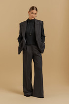 Костюм в стиле smart casual с контрастными кантами в швах создаст в меру строгий и одновременно расслабленный образ как для работы, так и торжественного мероприятия.