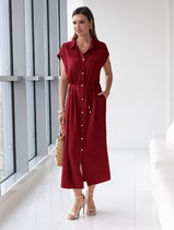 Длинное платье-рубашка с поясом и разрезами изо льна с вискозой