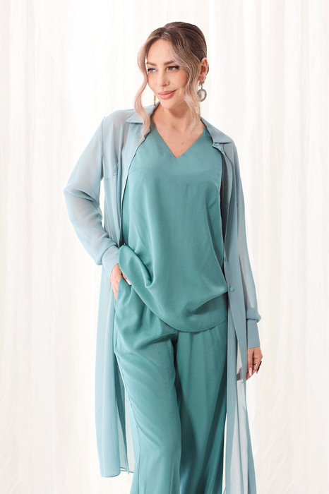 Состав: Блуза- ПЭ-100%; Топ- Вискоза-100%; Брюки- Вискоза-100%;