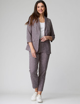 Блуза свободного силуэта со спущенным рукавом на манжете, изготовленная из тонкого джинсового полотна. Воротник рубашечного типа. По переду накладные карманы, застежка на петли и пуговицы, по спинке кокетка, в боковых швах разрезы. В качестве декора в комплекте съемная брошь в цвет платья.