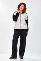 Костюм женский, состоящий из жакета и юбки. Жакет полуприлегающего силуэта из мягкого трикотажного полотна средней плотности, частично на трикотажной подкладке, с плечевыми накладками, рукава втачные, по переду функциональные карманы, застежка на петли и пуговицы. Декор по планке, горловине, листочке кармана из ткани контрастного цвета.