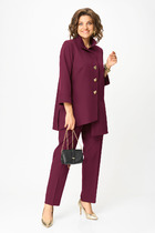 Костюм женский с брюками, футболкой и удлиненной рубашкой из шифона. Рубашка прямого силуэта со втачными рукавами и разрезами по бокам, застежка-планка на петли и пуговицы. Базовая трикотажная футболка полуприлегающего силуэта с небольшими втачными рукавами и декоративной печатью. Футболка прошла тестовую стирку при температуре 30 градусов: печать не линяет и не тяет цвет. Брюки полуприлегающего силуэта заужены к низу, притачной пояс на резинке по бокам, застежка на молнию, петлю и пуговицу, в боковых швах карманы. Уход за изделиями из шифона:
