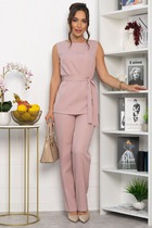 Комплект женский двухпредметный состоит из платья и жилетки. Платье свободного силуэта выполнено из трикотажного полотна ( лапша ). Перед и спинка цельнокроеные. Рукава спущенные. Жилетка выполнена из искусственной кожи на вискозной основе, А — силуэта. Перед со средним швом и асимметричным декоративным элементом. Спинка разрезная по центру.